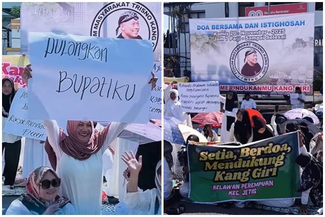 Beberapa hari lalu, 200-an warga berkumpul di depan gedung DPRD Ponorogo. Mereka menamakan dirinya Forum Masyarakat Trisno Kang Giri (FMTKG). Ada poster tuntutan, ada tanda tangan dukungan, dan ada doa bersama. Massa—yang didominasi emak-emak—meminta satu hal: agar Bupati Sugiri Sancoko, yang saat ini menjadi tersangka dugaan suap jabatan, bisa segera kembali memimpin Ponorogo.